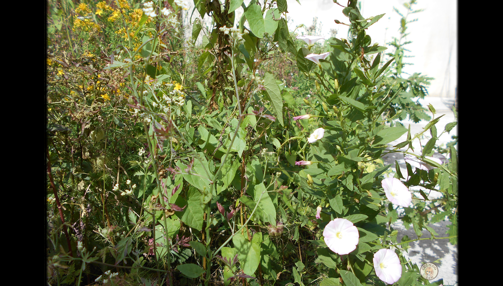 J'ai réussi à diriger quelque-uns de tous les liserons (grand et petit) sur le vieux pied de moutarde sauvage !