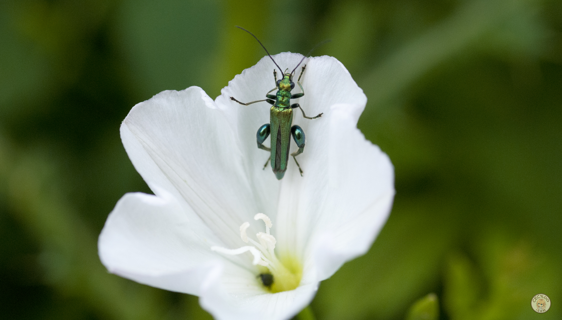 Un exemplaire de criquet fortement présent dans le jardin. Il y en a aussi des bruns, mais je n'ai pas réussi à prendre de bons clichés de ces derniers.