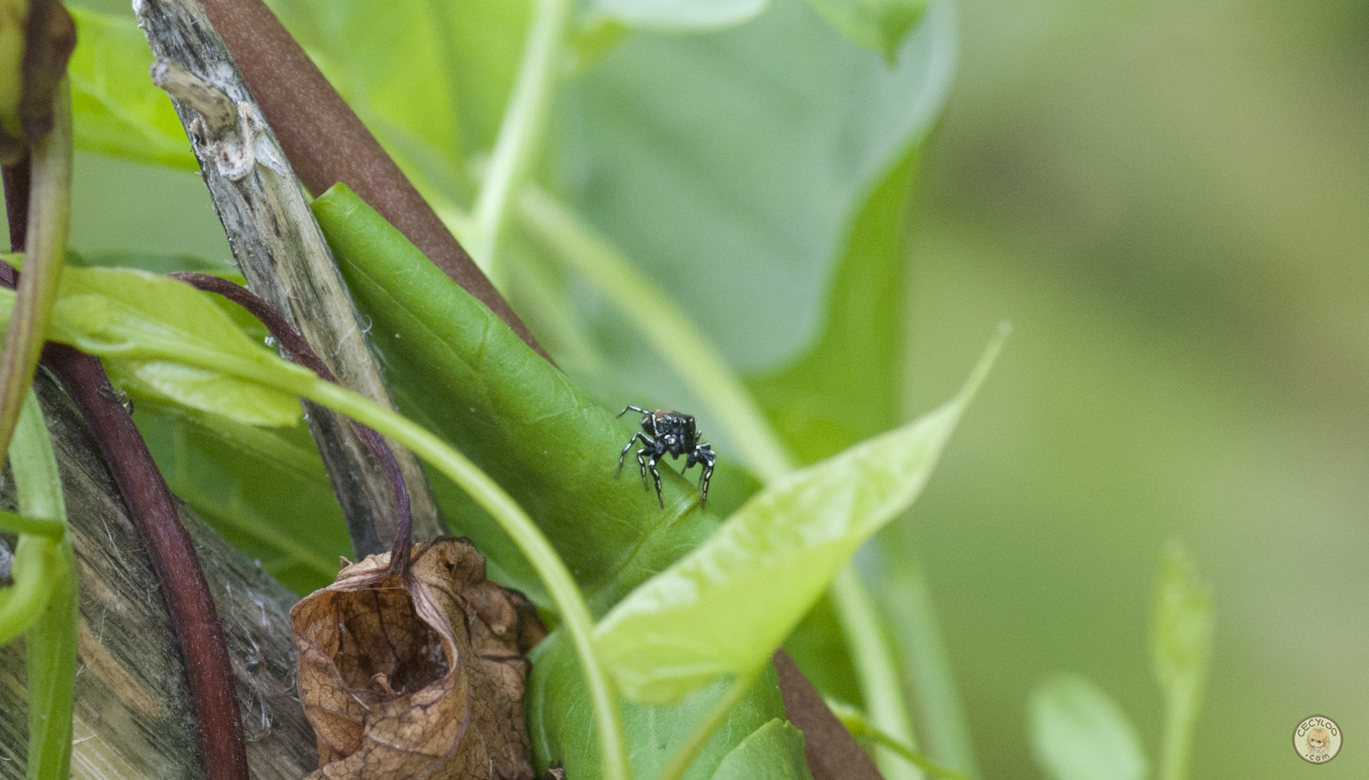 Je ne m'en suis pas rendu compte en prenant les photos, mais elle est en train de dévorer une petite bestiole verte...