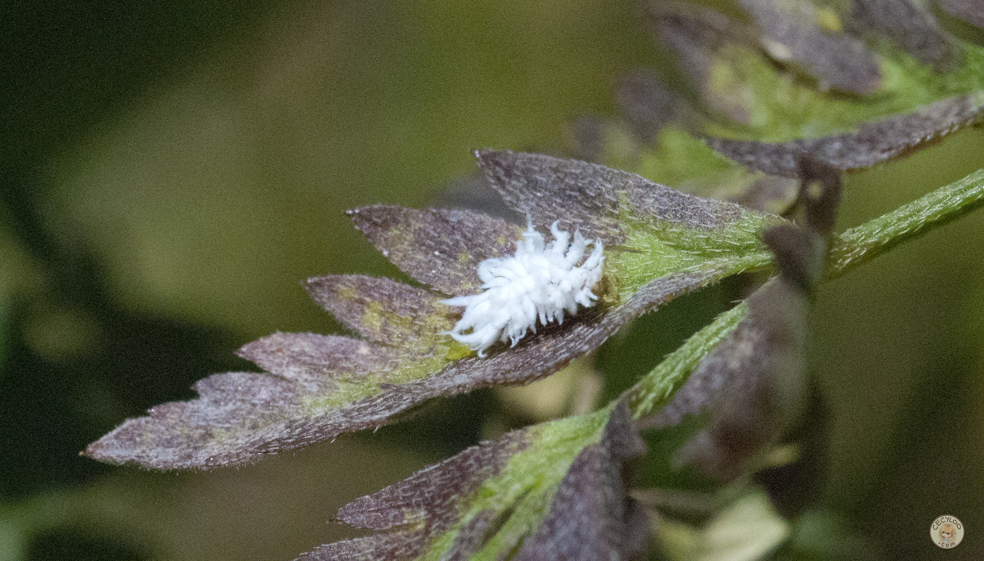Une cochenille farineuse sur feuille de cerfeuil, j'en ai en masse ! C'est trop choupinou !
